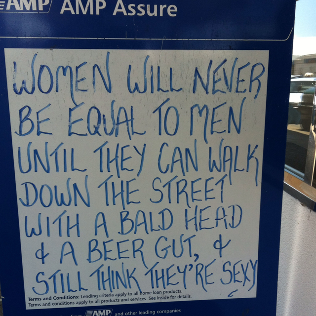 There seems to be a bit of a trend for signs on the path here and we spotted this gem directly outside an insurance brokers office.