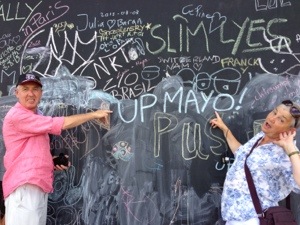 A womble on via several beverage stops and as usual Mrs Fogg found the opportunity to graffiti, I can take this rebel nowhere!. On then to Notre Dame cathedral and still no hunch back bell ringer in view.