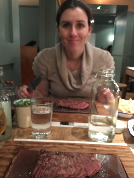 Time for lunch and a nice change a Flat Iron steak, cooked medium rare and if you want it any other way, then you have to leave.