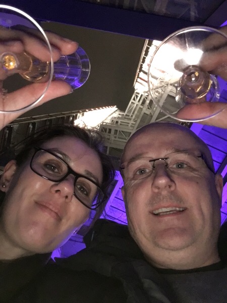 Here are we on the 72nd floor open viewing platform of the Shard, sipping a glass of fizzy falling down water.